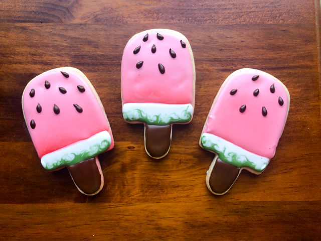 I am married to a watermelon-addict. When I saw that Marlyn created a trilogy of watermelon-based sugar cookies, I knew I was going to make them all. And so I did. Not in the same day, mind you… but taking the scenic route, which is the best route, always. Each cookie brought a little new thing to try. I cannot pick a favorite, love them all. Thank you, Marlyn! So here they are, in order of increasing complexity.