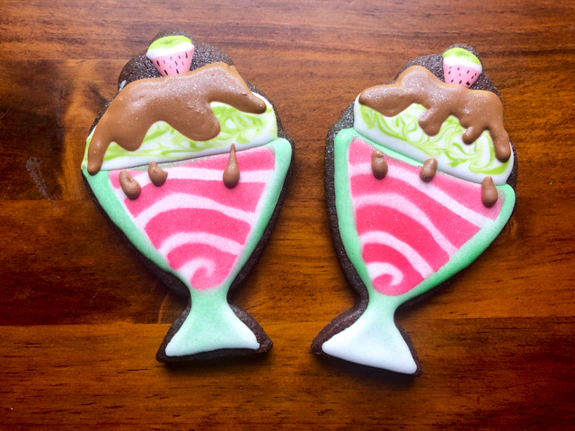 From this cookie the main lesson learned was piping the cone. Super nice technique that can be used in many designs… think baskets for instance!