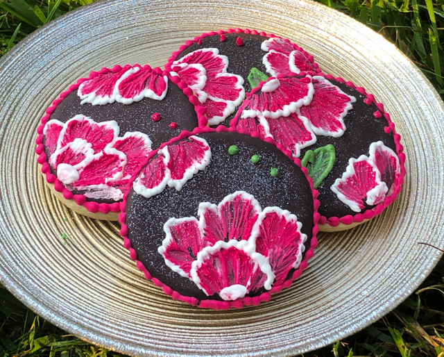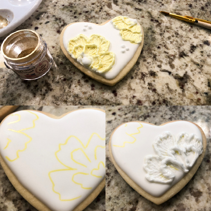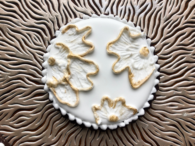 I shared this final cookie in the past, but I will include it again here, because it is a nice departure from brush embroidery conceived by Amber, in which the effect with the brush is made on a wet-on-wet base. Give it a try, it is simpler because you can use regular flooding consistency.
