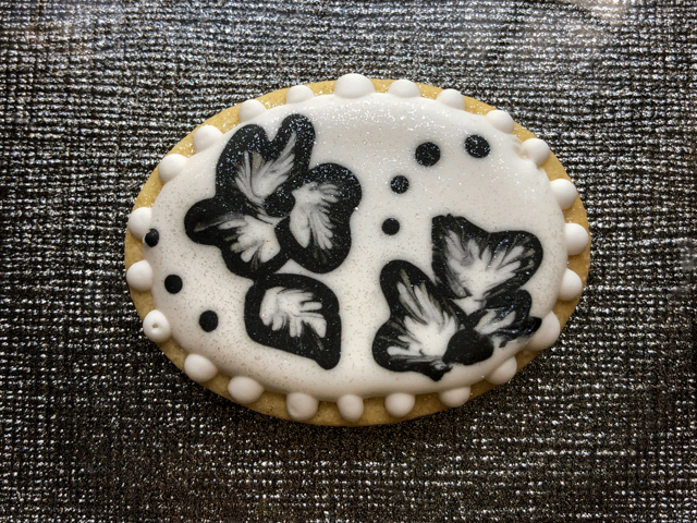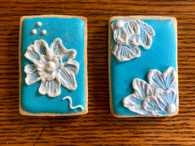 This might be the technique I struggled the most with. My first four attempts were huge failures, but I kept trying. My advice, in case you’ve experienced the same, is to focus on the consistency of the Royal icing, and practice on a piece of parchment paper or, if you have one, a plastic fake cookie like this. Don’t put pressure on yourself trying to decorate a cookie you have a special friend in mind to offer to. Once you get comfortable with the consistency, you are 80% of the way there. Today I share a few examples, made in the past three months or so.
