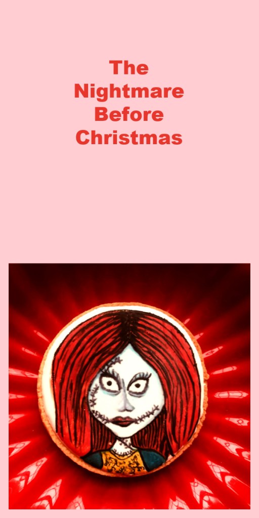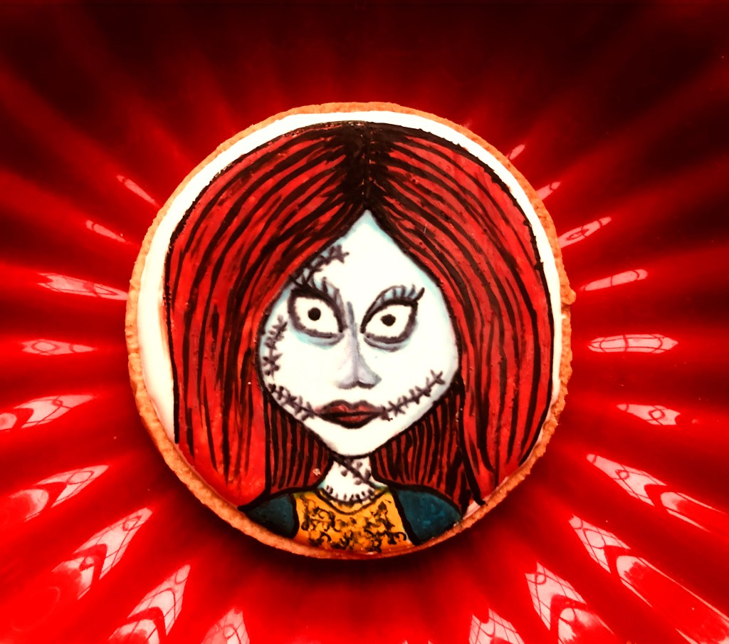 I am so so excited about this post! My inability to draw anything free-hand has always bothered me. When I saw that Michelle (the very inventor of Sugarprism in flesh, blood and awesomeness) was going to teach a class online about painting Sally, from the Nightmare before Christmas, I was tempted. Imagine that: creating a very complex image on a cookie without the help of a projector. I admit that my first reaction was to run away screaming. But she convinced me to give it a try, and said she was SURE she could help me. It would be a slow, step-by-step thing, and painless. So one particular Sunday afternoon, I spent two hours surrounded by Sugarprism, brushes, and guess what? There was almost no pain involved. Instead, I was rewarded by a cookie staring at me with a surprised look. Did you really just paint me?