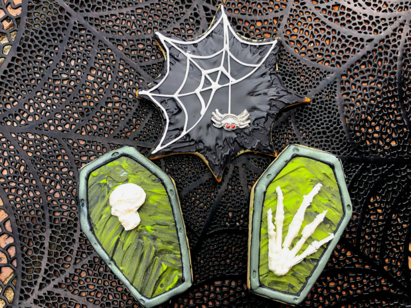 In the same tutorial she shared a very nice tombstone cookie, and a cauldron. I had made a cauldron the week before, but hers had extra touches of cool, like addition texture to the surface. I will have to re-visit the cauldron issue next year, as spooky baking season is coming to an end. I am not sure how I will deal with Halloween withdrawal syndrome. Am I alone in my misery?