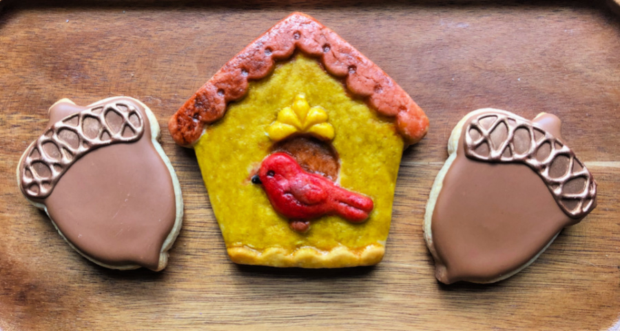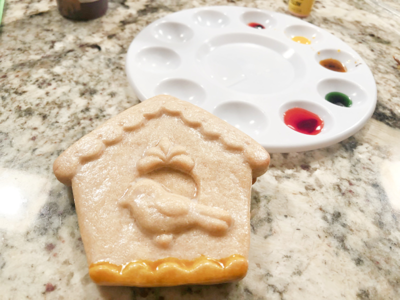 The mold I used can be found at etsy following this link. Worked like a charm. For the glaze, mix 1 egg white with 1/2 cup of powdered sugar until fully dissolved. Brush on the surface of the baked cookie after it is cold. Let the glaze set. Add the colors you want to use to separate wells, and mix water to dilute them well. You can reduce the amount of water to get a more intense color (like I did for the body of the little bird).