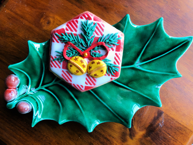 Finally, my own contribution to this post, with a super simple design using mini-cookie cutters from Sugarbelle. These are tiny, two-bite little things, perfect when you don’t really feel like indulging too much in sweets. All you need is green, red and white icing, plus sprinkles. The fern cookies require some piping consistency icing, but you can conceivably just use a food pen to simplify things quite a bit.