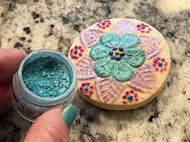 My favorite method is mixing luster powder with alcohol, either vodka or everclear. Vodka dries a little slower, so it is more forgiving to use. This year I got to play with a new color, called Mermaid (featured in my recent In My Kitchen post).