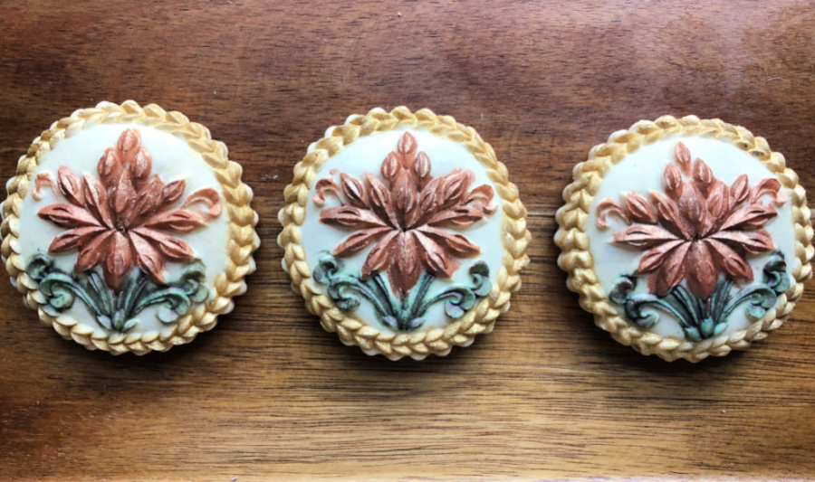 Finally, a very special mold, the center one below, a gift from Phil. It is not easy to find molds made from real wood, those are pretty much antiques. He managed to find one, and it is so so beautiful, the intricate details… I love it!