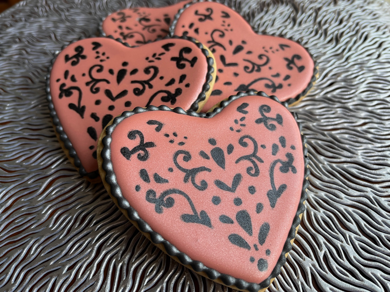 I hope you could find some inspiration for your cookies, as Valentine’s Day approaches! I feel that there’s never enough time to cover all the styles that appeal to me, but in a way the heart motif is one that I don’t mind doing regularly throughout the year, so expect to see more…