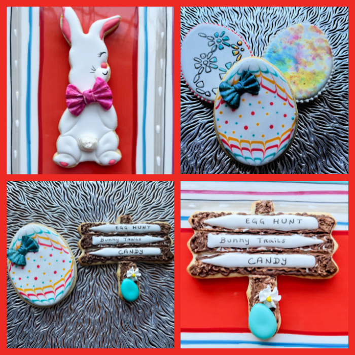 Before class, we were supposed to bake the cookies, have two of the Easter eggs iced in white and fully set, and make a few Royal icing transfers using the templates that Amy designed and shared earlier. A few more details as fondant decorations, and we were all set!