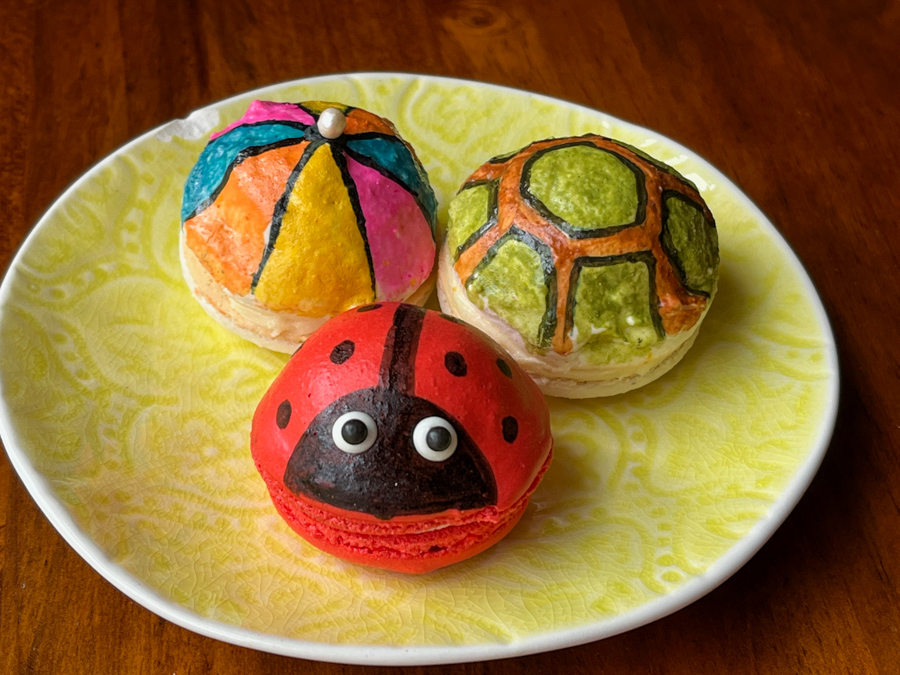This was my first successful attempt at 3D macs, some of the shells were not uniform enough to make a nice lady bug, but I was happy with the outcome anyway…