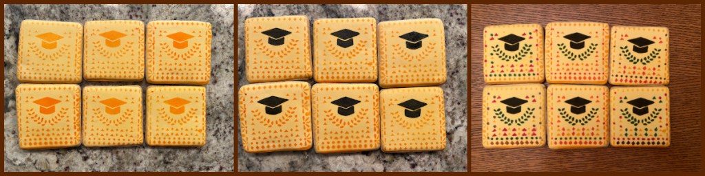 Once again, stencils come to the rescue… Another image downloaded from Cricut Workspace, I made these for a friend’s daughter who graduated last month. With a bonus round cookie, just because…