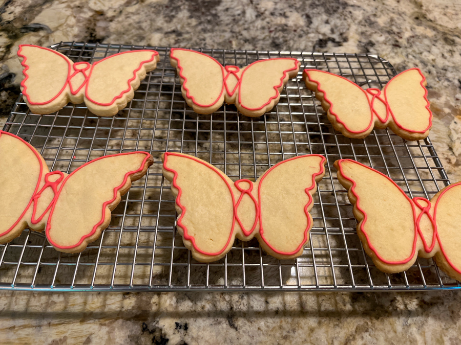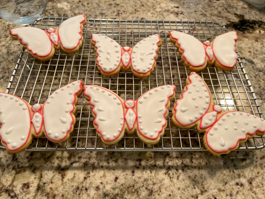 Then, flood the different areas with white Royal icing, and allow it to crust for 1 hour or so…