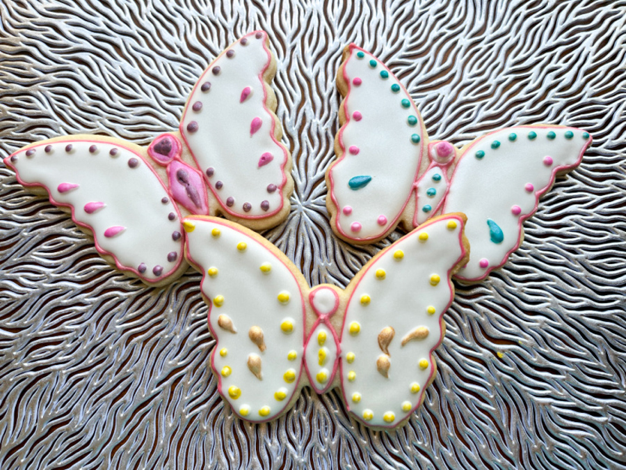 Sometimes we might get lazy and not want to mix a lot of different colors for Royal icing. But we still want colorful cookies… That is called a conundrum, and it is easily solved: make white icing, grab your favorite Sugarprism colors, and paint away! I cannot take credit for the idea, I simply followed the steps of Michelle, artist extraordinaire, and the very inventor of Sugarprism…