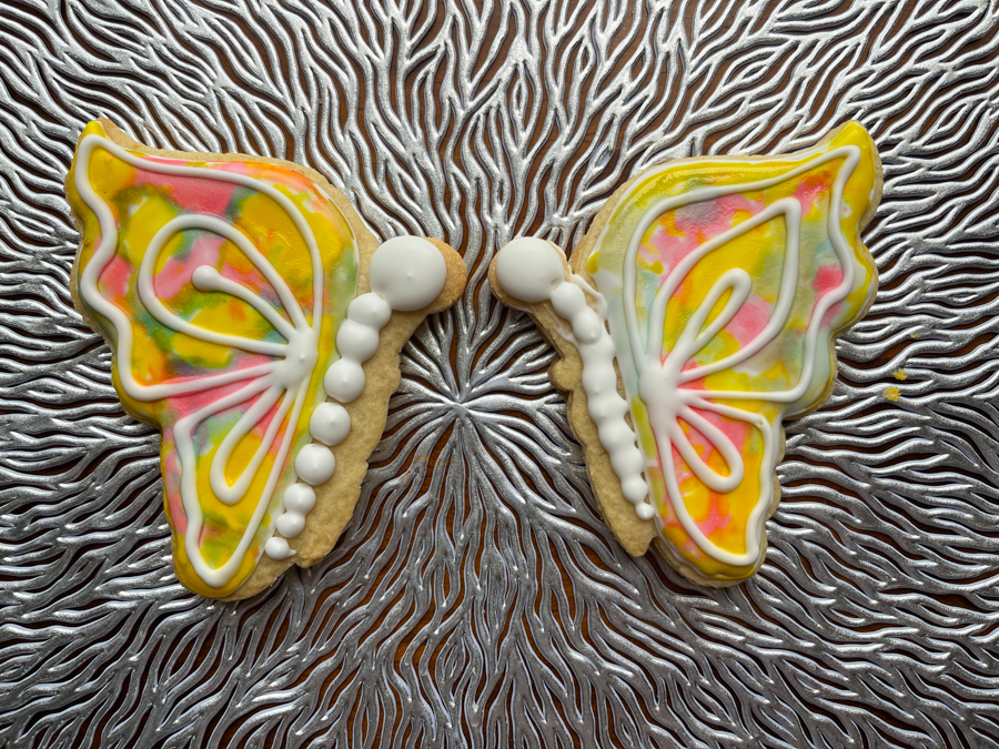 The exact same method is used, I love this cookie cutter (available here at etsy.com) that shows the butterflies from a side view…. Make sure to make some in opposite orientation so they can be grouped together in a more interesting array.