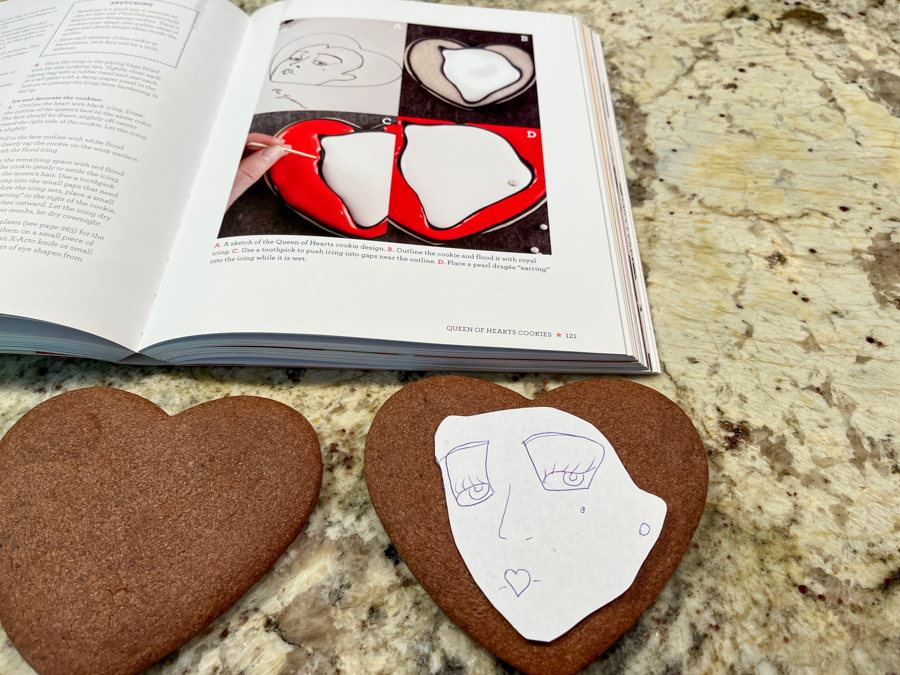 These cookies were featured in one of my favorite baking cookbooks, Sprinkle Bakes: Dessert Recipes to Inspire your Inner Artist. The title says it all. The book if full of incredibly creative ideas, I love it, and highly recommend you get a copy. All things considered, these are not hard to make. Think three colors of Royal icing, black with piping consistency, white and red in flooding consistency. No complicated piping, no wet-on-wet work. What makes these cookies special is the use of fondant pieces to give extra dimension and pizzazz. In the book you’ll find templates to make life easier…