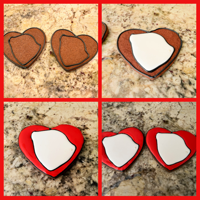 And a little overview of the process, which is pretty straightforward. I used a Wilton tip 3 to outline in black. And a white pearl for the earring, added right after flooding the white portion.