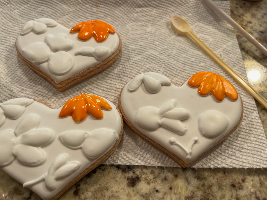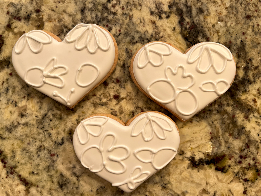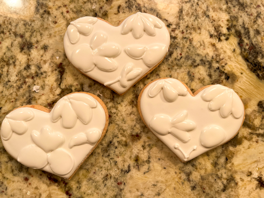 So there you have, six heart-shaped cookies, in two different floral styles, one will require some time and effort, but the golden ones are the easiest cookies you can dream of. Apart from grabbing a box at the grocery store, that is…