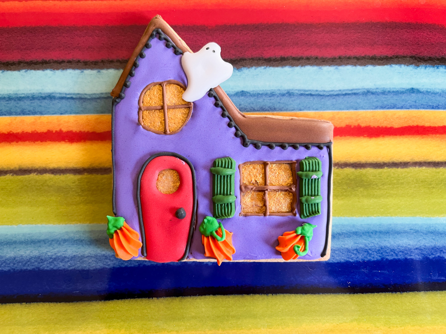 With Halloween quickly approaching, spooky cookies are hard to resist. Today, two more projects inspired by Marlyn from Montreal Confections. The first using the candy corn cookie cutter, a favorite of mine, and the second one, a little more involved, to bring a haunted house to life.