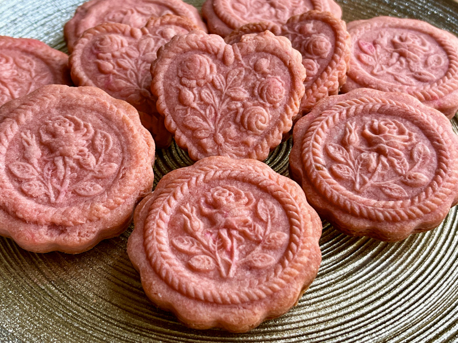 Most of my springerle molds are from this shop at etsy. I need to optimize the recipe for these, that used strawberry powder in the dough, once I do that the recipe will be available on my main blog. I often paint springerle type cookies, but left these exactly as they baked for a change.