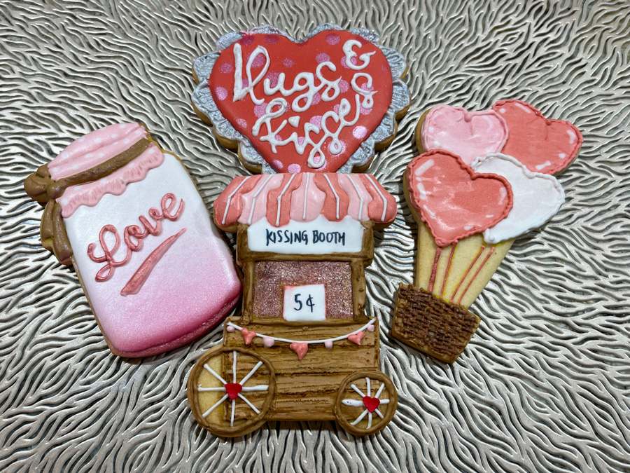 By now it is pretty clear I am not ready to drop the love theme… This set of cookies were demonstrated in a tutorial by Andi Kirkegaard. You can get all details and join her classes visiting her website with a click here. I have followed her classes before, these florals were favorites of my past. Once again, because those are part of a paid tutorial, I cannot share details or templates, but once you sign up, you will receive quite a bit of material to work from: cookie and icing recipes if you need them, and super detailed instructions as to how much icing to make in each of the needed consistencies. It is not a beginner’s level project, but if you have some experience decorating cookies and working with Royal icing, you will do great.