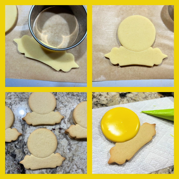 There are so many possibilities of expressions, it is fun to play with them… eyebrow shape, mouth, eyes, they all come together to convey whatever expression you want. The only thing you need to worry about is cratering of the eyes, since it is such a small area. To prevent that, before filling it with Royal icing, make a little cross or a little line with icing, allow it to set for 10 minutes or so, then fill with icing to form the eye. They will stay nicely smooth that way.
