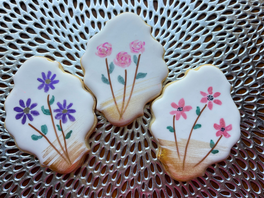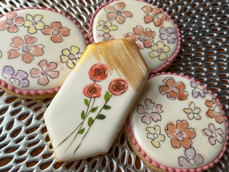Springtime, Mother’s Day, they both beg for floral cookies. A small sample of different styles to celebrate this special week. Below the cookies just a few words to describe the technique used.