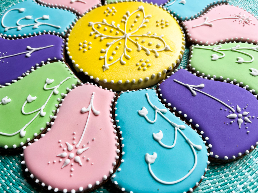 Another amazing design by Tunde from @tundescreations. She revamped her website to include all tutorials and links to posts, so pay her a visit (click here) and consider joining her Cookie Club Academy to challenge yourself with cookie decorating. On her site, if you go to Classes, Online Pre-Recorded, you can get some lessons to buy individually, independent of the Cookie Club. Have fun browsing!