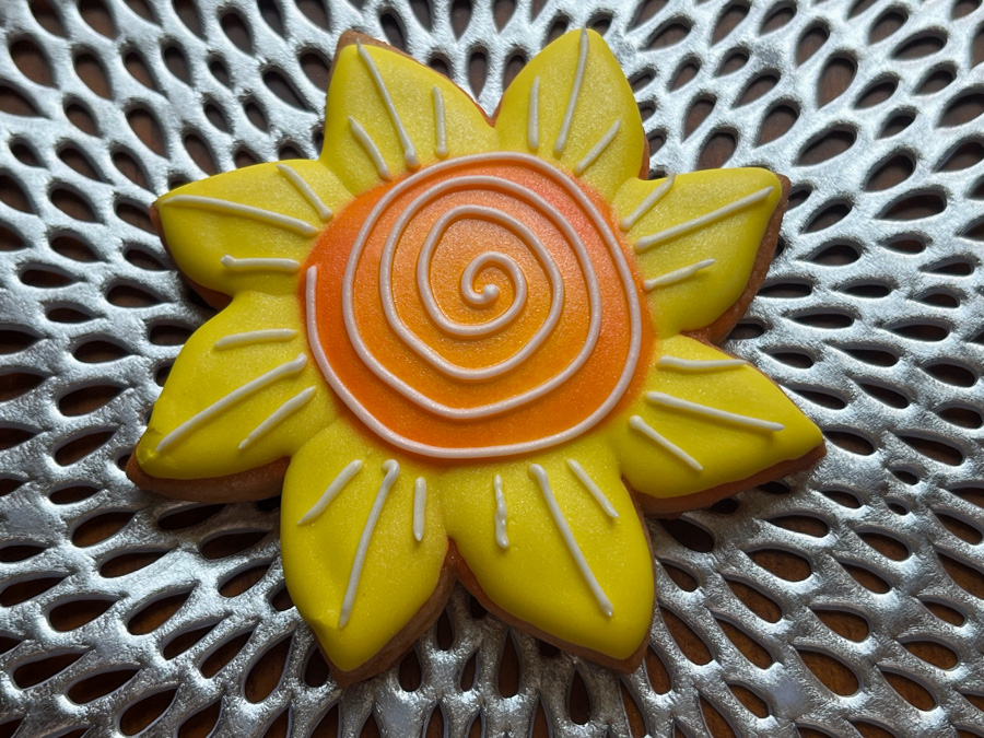 To get a little more pizzazz to the sun cookie, I used the air-brush to add a hint of orange to the yellow center.