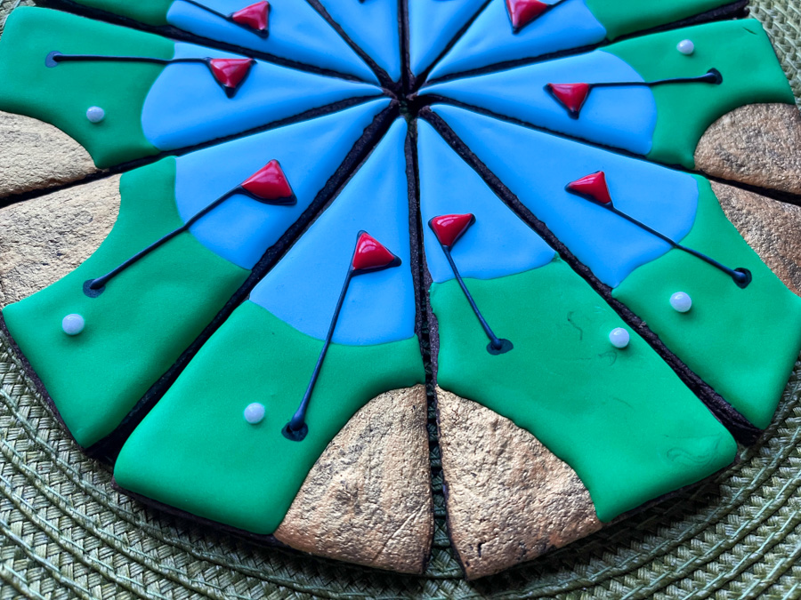 One of the classic ways to make golf cookies is showing the green with the flag and hole, and you can use many different cookie shapes and designs for that.