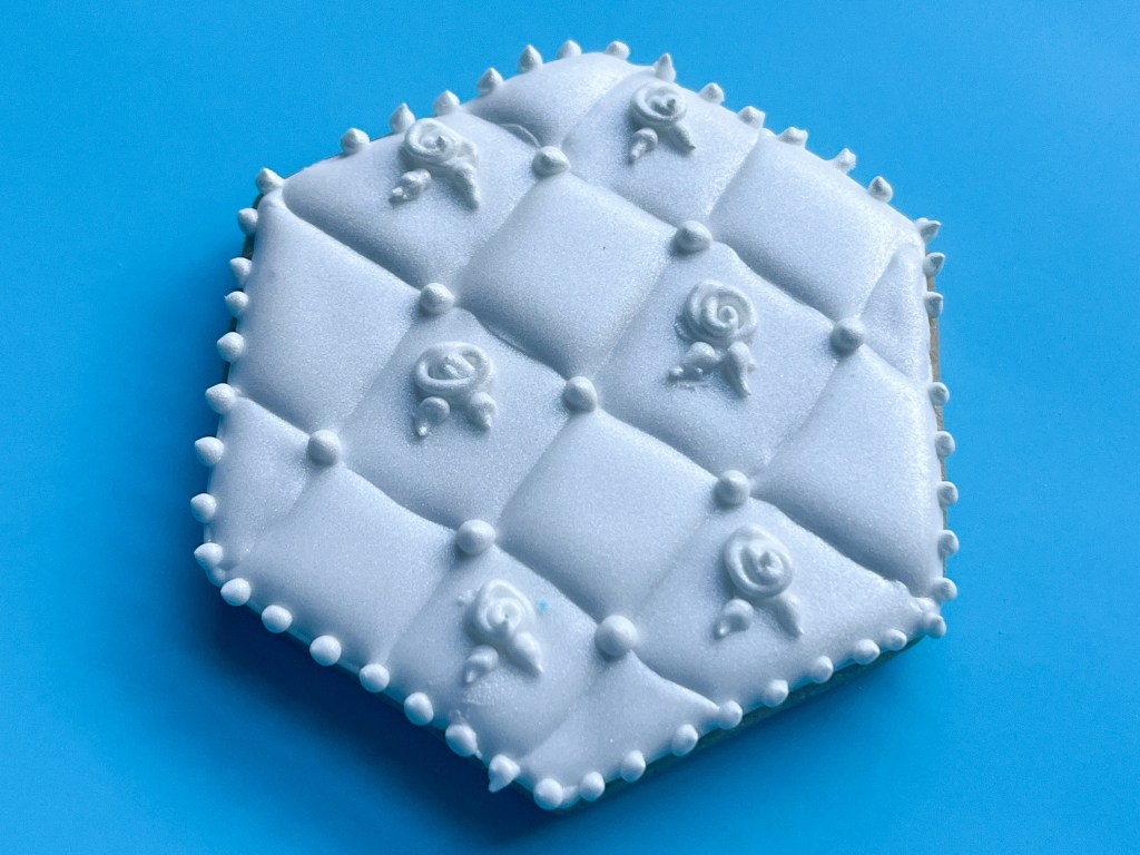 The simple piped rose in the quilted background is such a nice technique to have under your belt. It is definitely going to be on my future cookies for springtime.