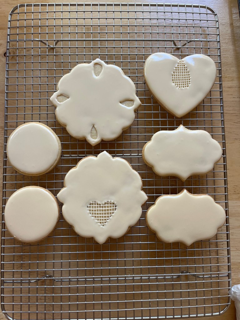 I had issues with the heart grid, when filling the spaces because the consistency of my icing was slightly thick, but other than that everything went smoothly….