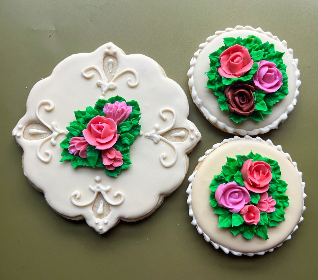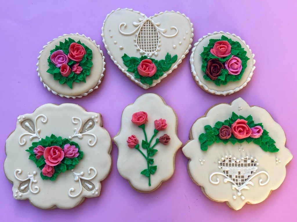 One more online tutorial wrapped up, another wonderful class by Tunde Dugantsi, join her club clicking here, and come have some major learning fun. This class involved making tridimensional roses with thick Royal icing and using it to decorate whimsical cookies in different shapes. I am totally in love!