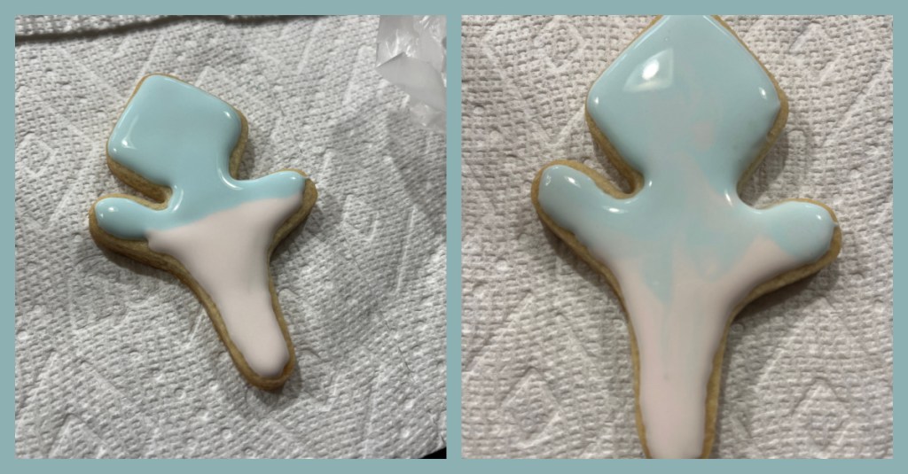 Marlyn provided files to cut stencils for the icing step for the members of her Patreon group, so that’s what I used to draw the images on each cookie. For the central round, I used a stencil I had. Instead of air-brushing, I simply used a metallic pen, hoping to get a bit of a shadow around the white icing, as suggested by Marlyn.