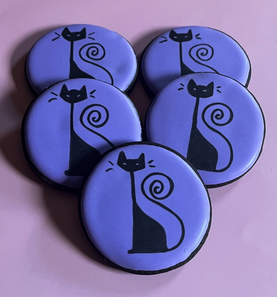 If you are good at drawing you can do these free-hand, but I relied on a projector to help me out, so that all images were similar and the set more harmonious. I went with purple for the background and black pen for the cats.