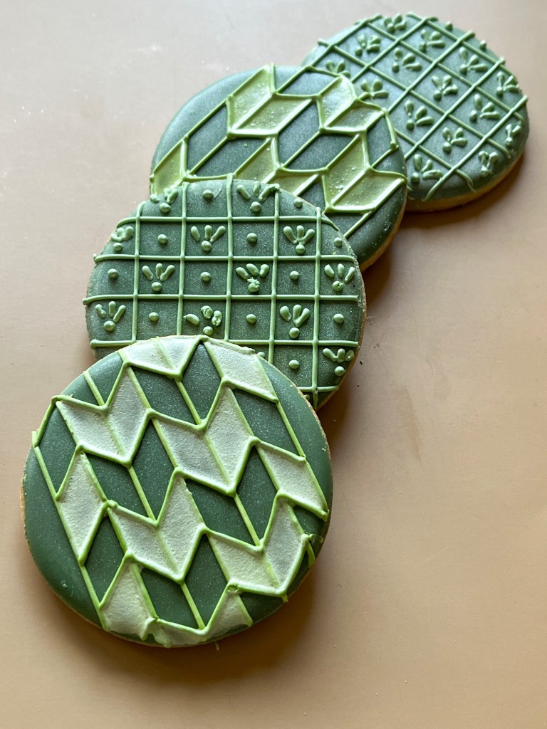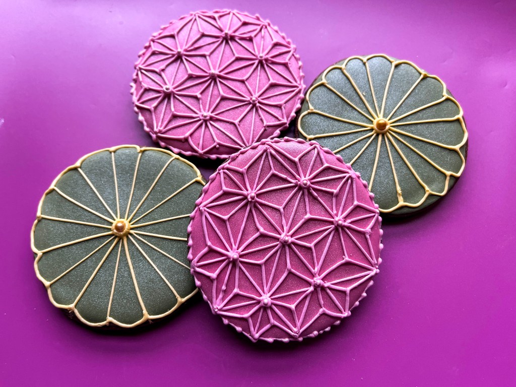Simple lines give these cookies an Oriental aura that is elegant and subtle at the same time. Lines can be very similar to the background or in contrasting colors.