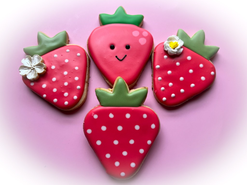 Another great subject for cookie decorating, it is time to focus on this gorgeous fruit, which in botanical terms it is not a real fruit, but a pseudocarp. However, let’s not get too carried away with details. Fruit sounds a lot sexier than pseudocarp, anyway. I have a few designs to share, some are my own, some come from the super sweet Haniela.