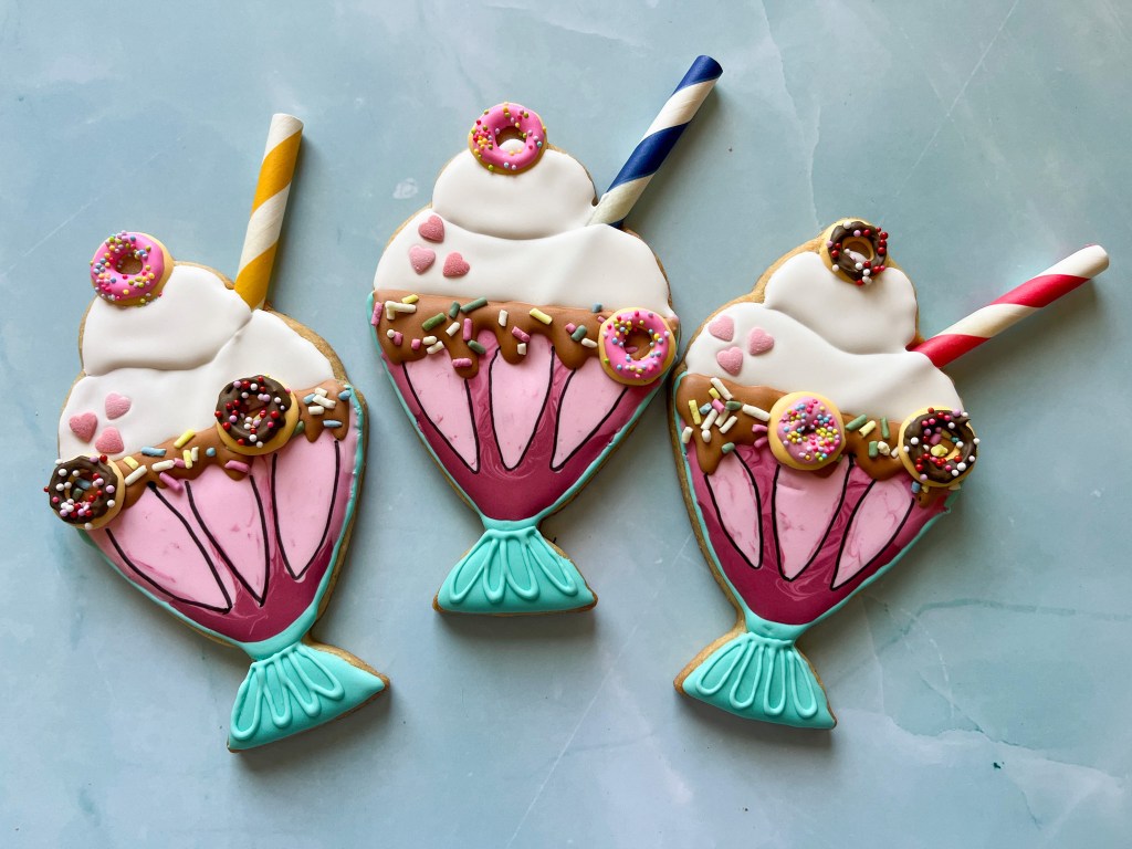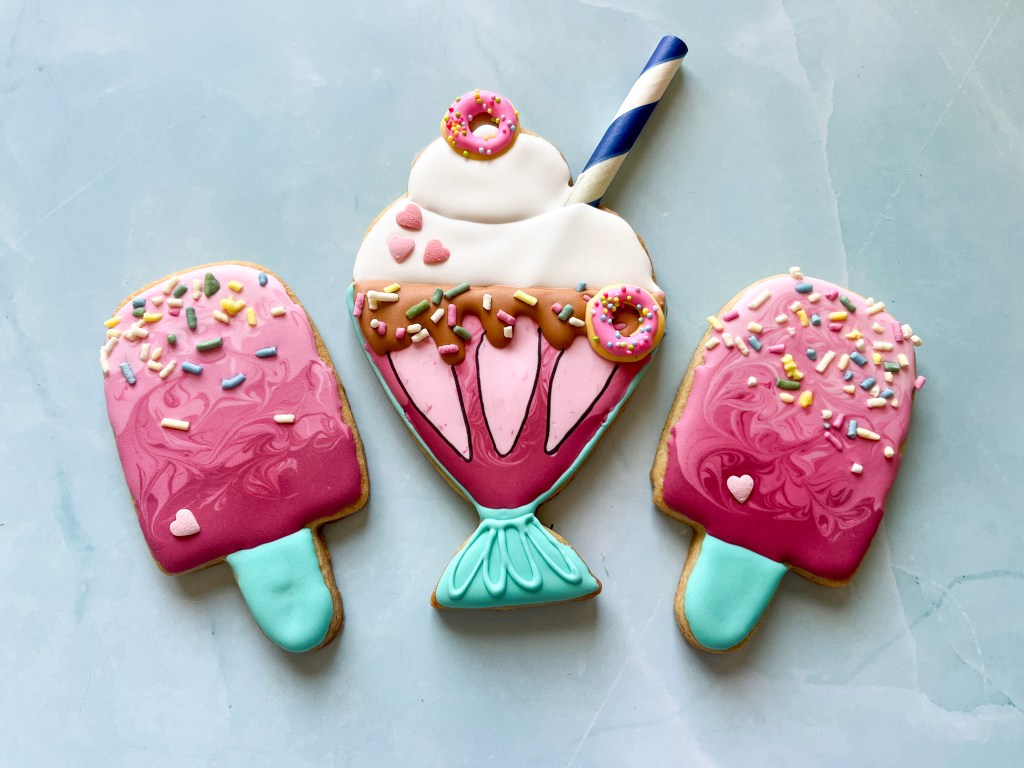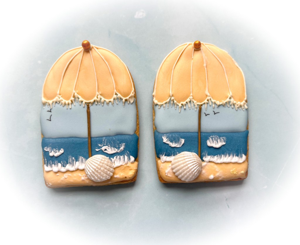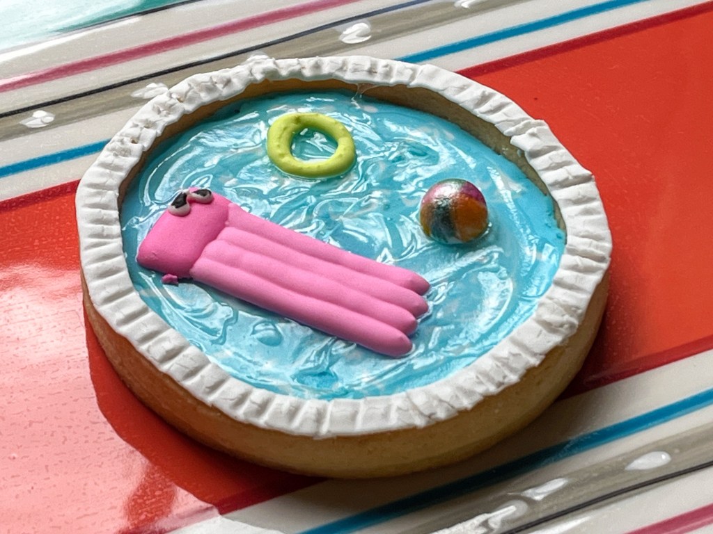 Now, if the beach is not your thing, maybe a pool will do? This is a cookie designed by Amber, straight from the Cookie Club (click here to join). My favorite detail is the pool water, made with Wilton’s clear piping gel.