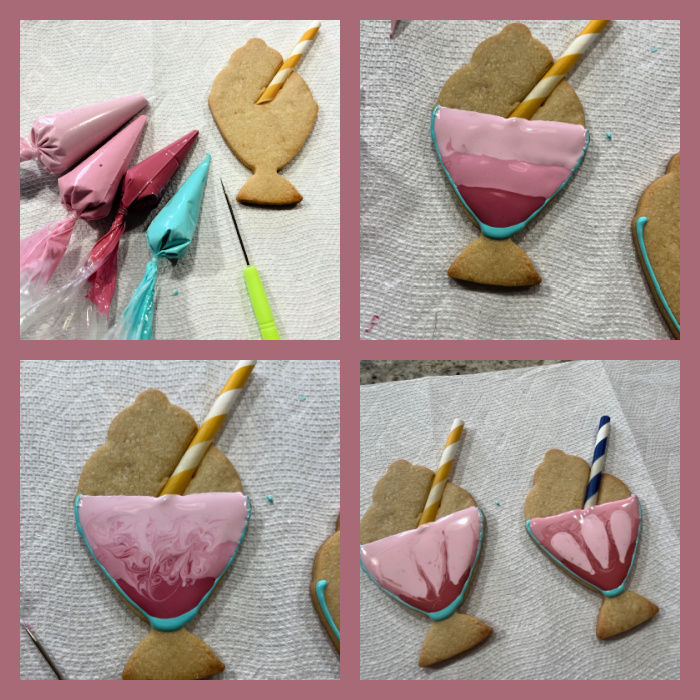 To watch her detailed explanation, click here. Below some steps of the decoration. The paper straws are baked into the cookie, which I find super cool.