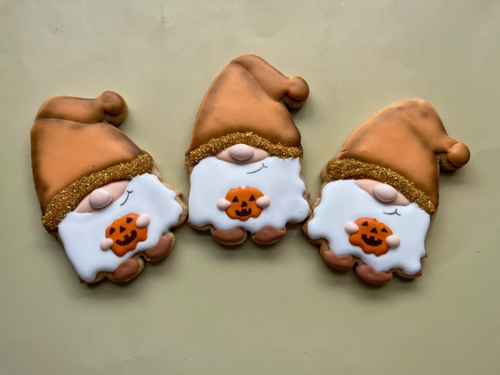 I have a soft spot for gnome cookies, their cuteness level can go super high… Today I share three design ideas. No, I did not follow any tutorial this time, just improvised my way through.