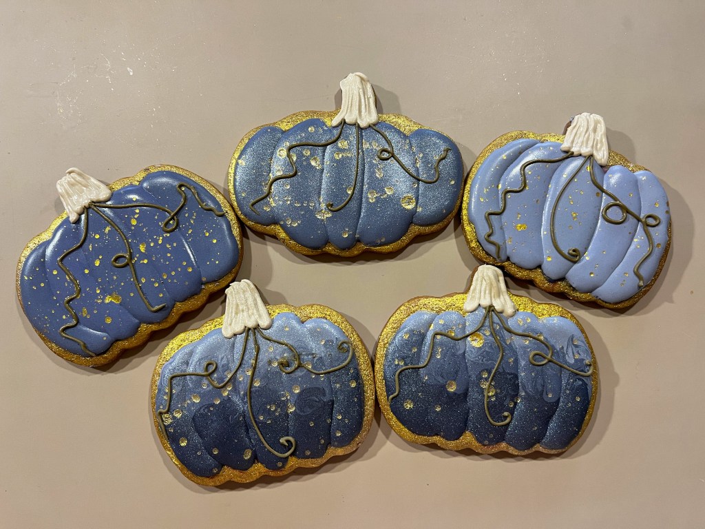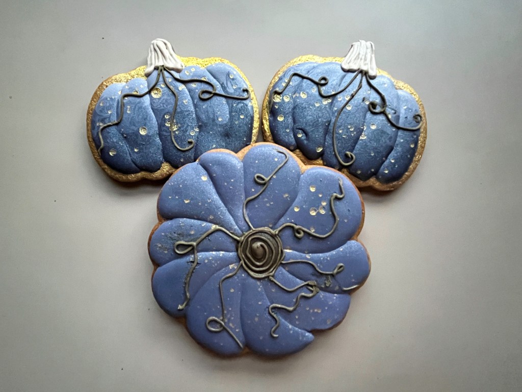 My own improvisation on this set was a large top view pumpkin cookie, but I skipped the marbling step…
