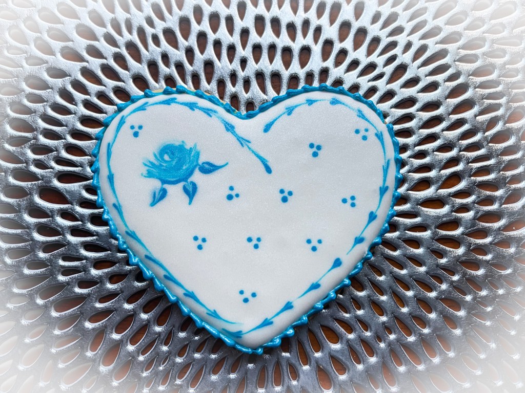 I cannot lie, this is not a beginner’s project. The trickiest part is the central rose, but Amber demonstrates it quite clearly, and if you take your time and practice, it will be part of your treasure chest of skills. From that basic design, I made a little departure using the heart shape.