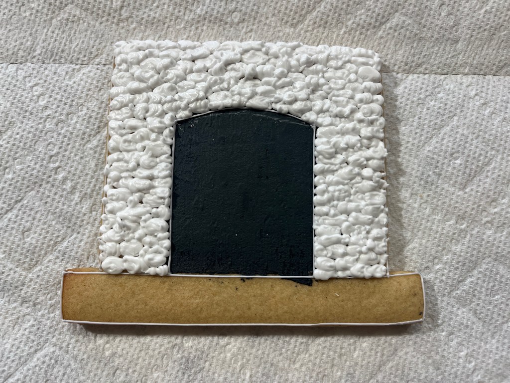 I love the method she used for making the stone wall around the fireplace… It was new to me, and I will definitely be using it in the future. As usual, I do not share details of paid classes, it would be unfair, so I just offer a picture of the almost finished cookie.