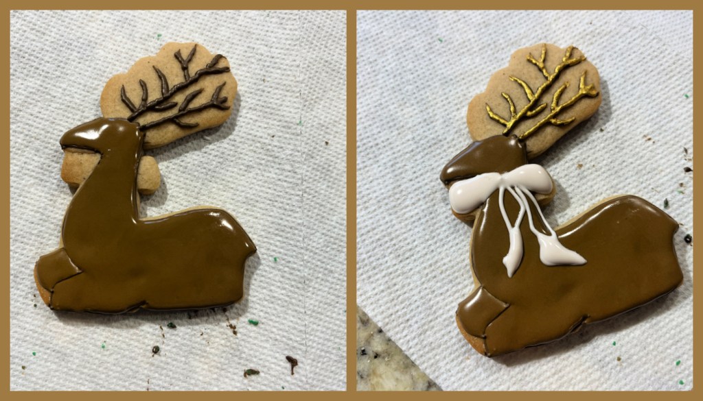 The toughest cookie for me was the sitting reindeer. I could have done a better job with the bow, but tweaked it a bit in the end and I guess it had a reasonably happy ending.