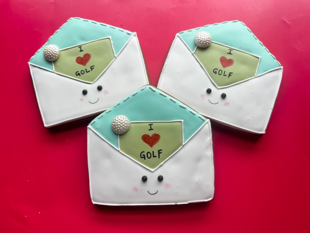 I did not take step by step photos of this particular cookie, but the following week I used the same shape to make golf cookies for hubby and his buddies, so you can see the process below…